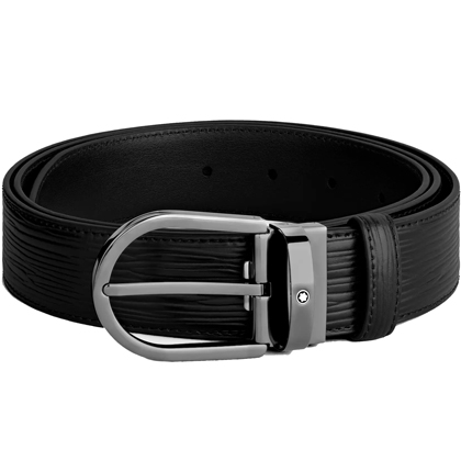 Черный кожаный ремень с подковообразной пряжкой 35мм от магазина премиальных ручек Premium Pens в Новочеркасске.